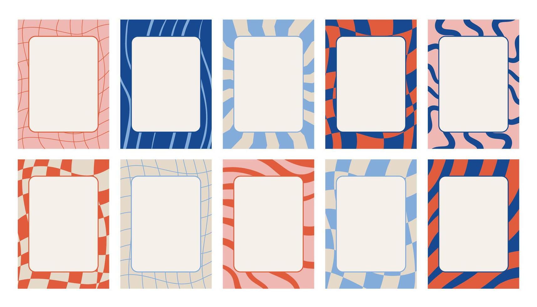 Set of groovy retro posters, cards or note pages with checkered, striped and wavy textures. Simple clean frames and open copy space make this collection perfect for text, quotes and design use. Pro Vector