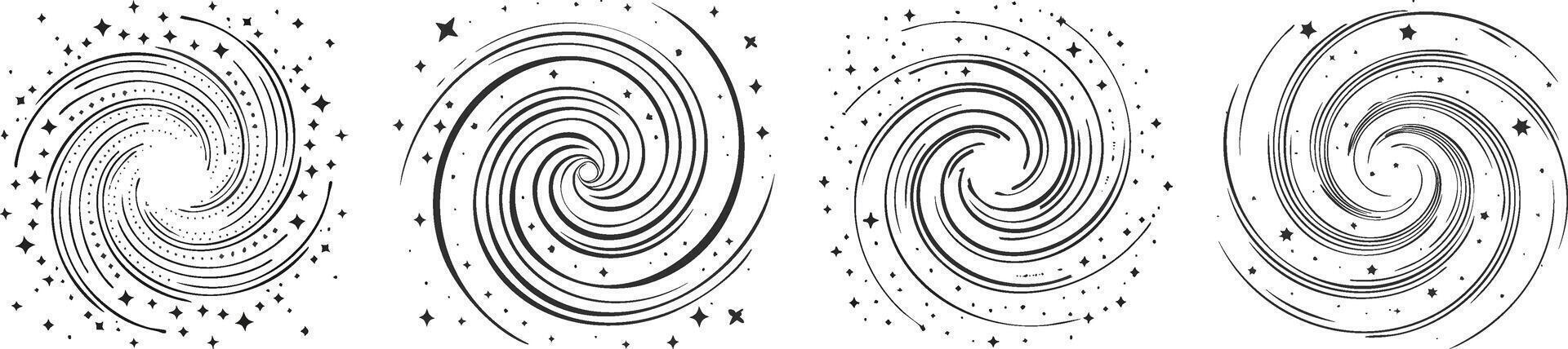 Abstract galaxy spiral shape smooth black line art flowing swirl pattern celestial design minimal elegant Pro Vector