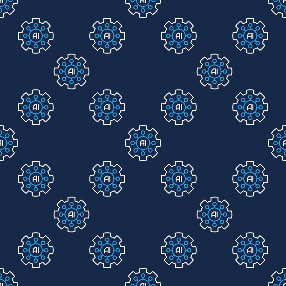 AI Gear Artificial Intelligence Cog wheel seamless pattern in thin line style Pro Vector