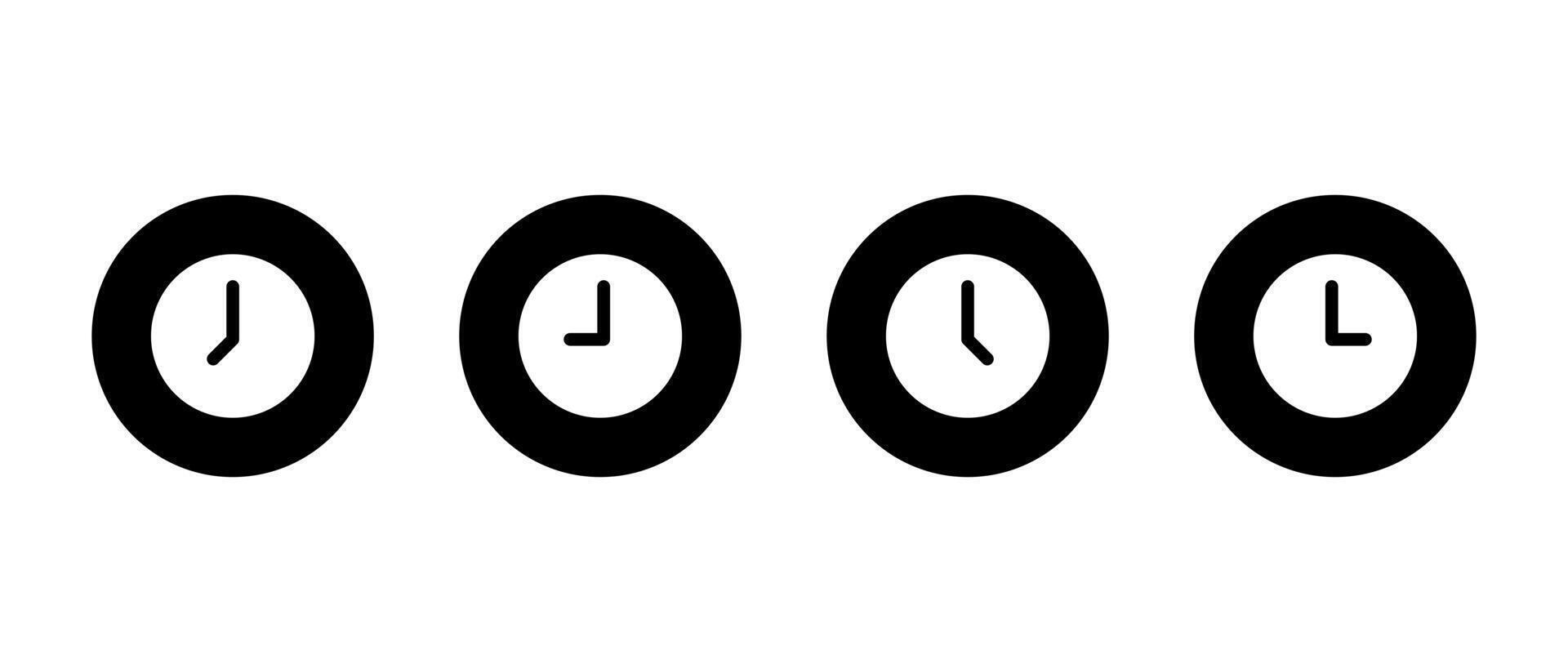 Clock and time icon set in black circle. Alarm, hour, and timer symbol Pro Vector