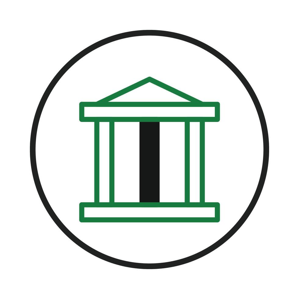 Minimalist depiction of a classical architectural structure within a circular framework offering a vector