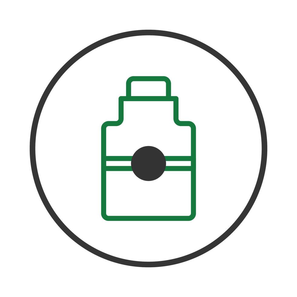 Minimalist green container icon surrounded by a black circle displaying simple design for medical vector
