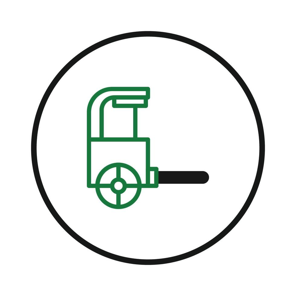 Minimalist outline icon showcasing an imaginative wheeled device with a box and handle in a circle vector