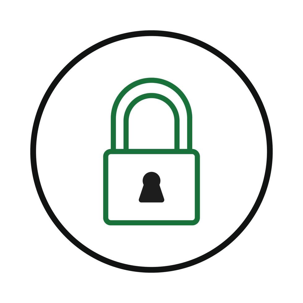 Secured access symbolized by the green padlock icon enclosed within a circular outline security vector