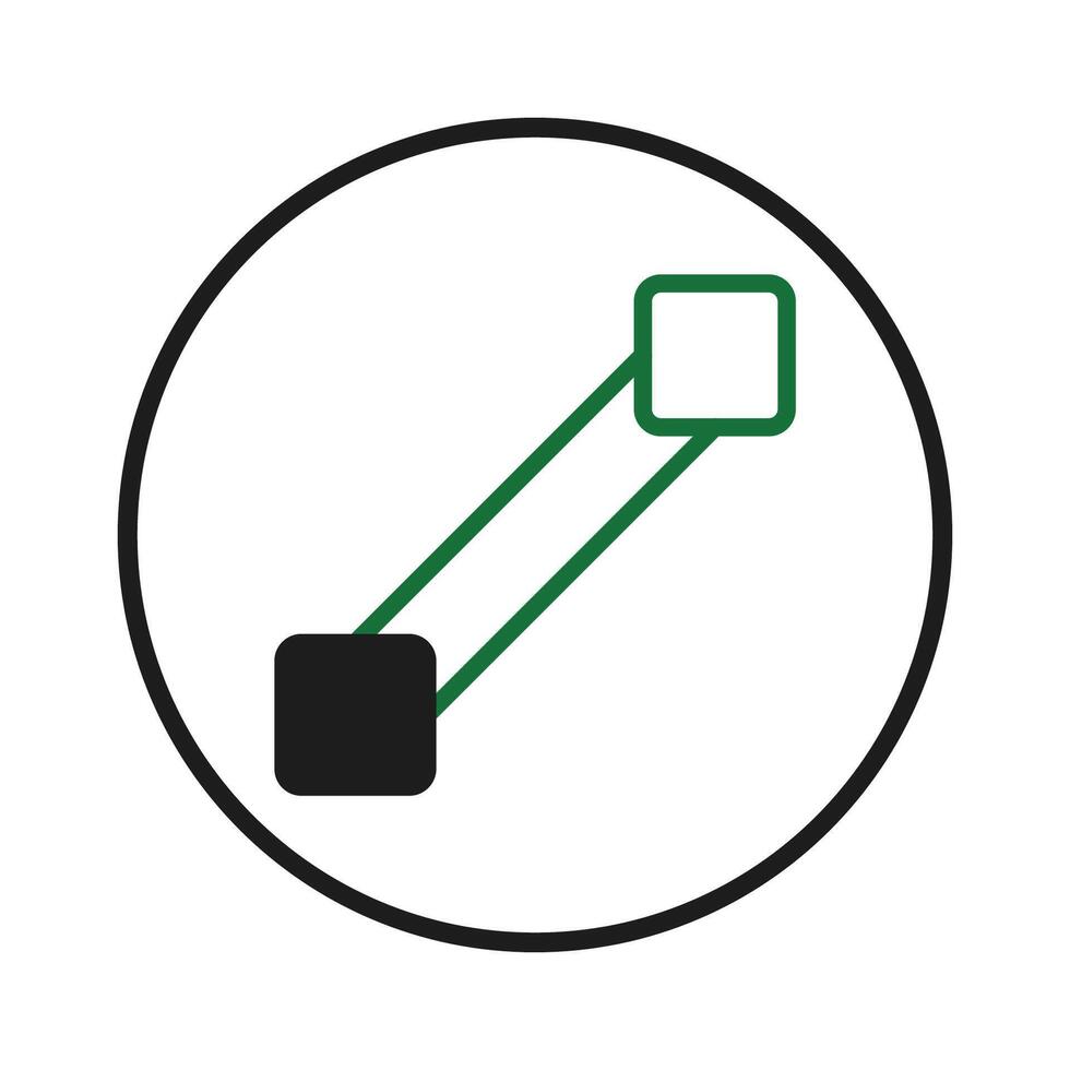 Simple network communication visual with green connecting link line and black and white square Free Vector