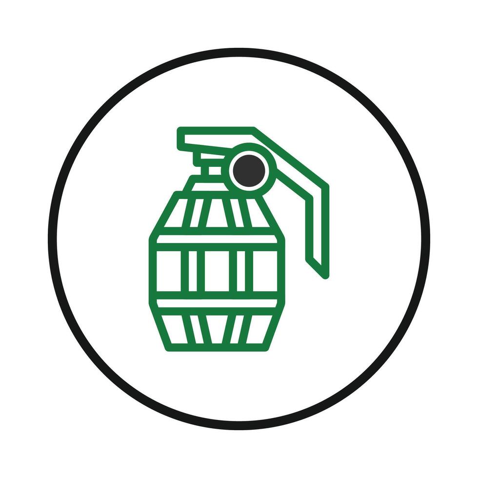 Stylized green grenade icon within a circular frame representing danger and explosive weaponry for vector