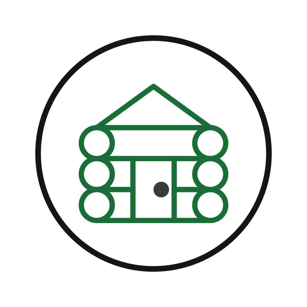 Stylized minimalistic log cabin symbol inside circular frame emblem architecture or building vector
