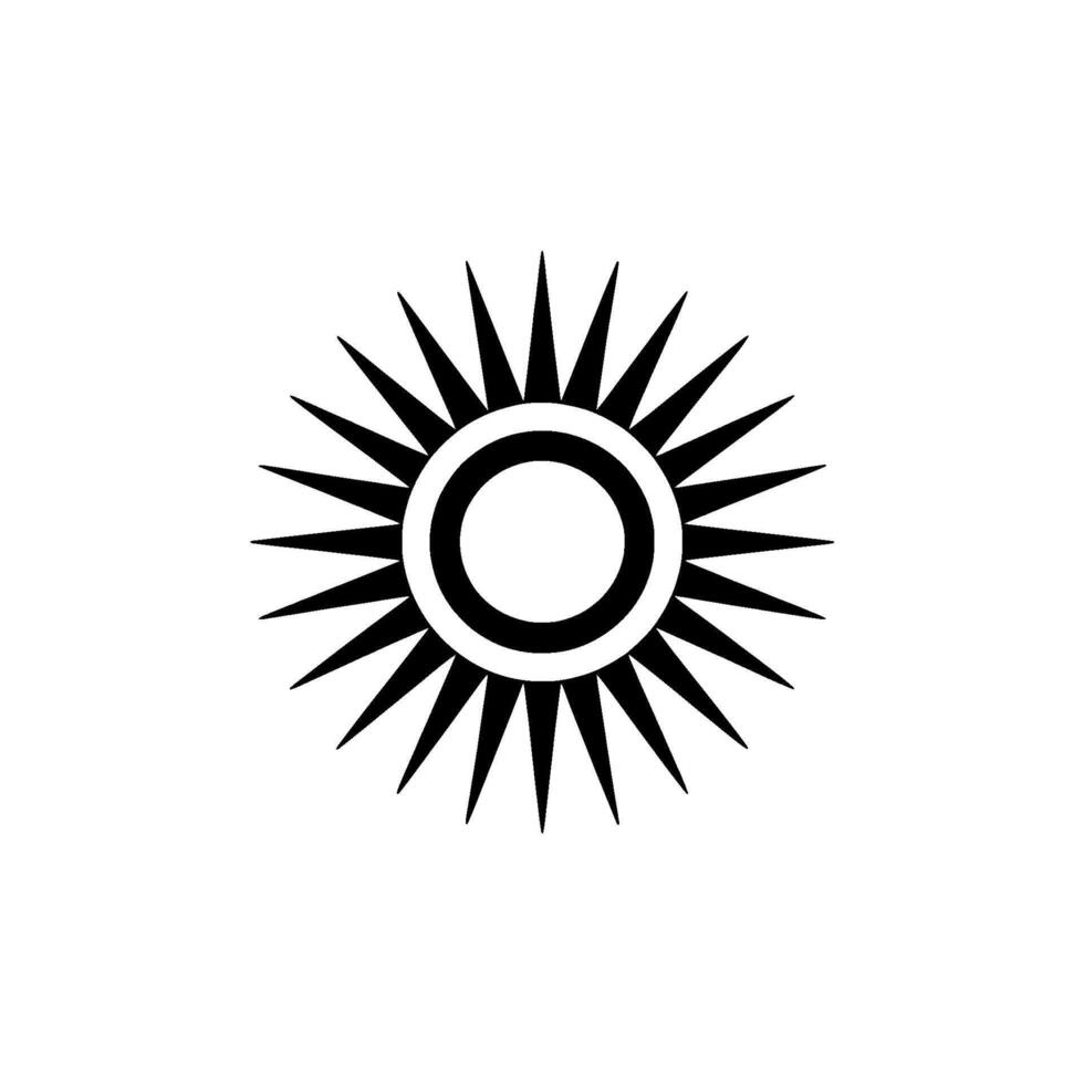 A striking geometric silhouette of a stylized sun with sharp radiating rays and a concentric circular core isolated Pro Vector