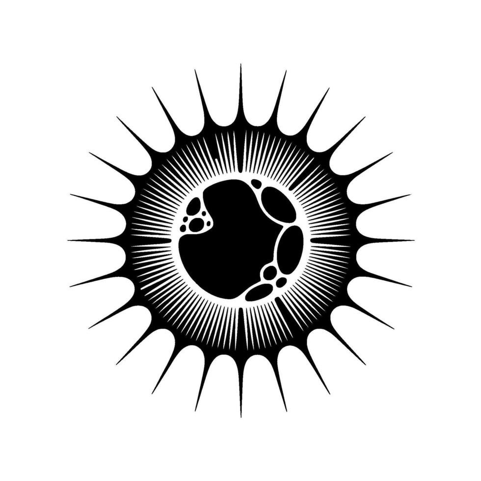 A stark abstract featuring a central sunburst radiating sharp pointed rays from a dark core with circular organic shapes within Pro Vector