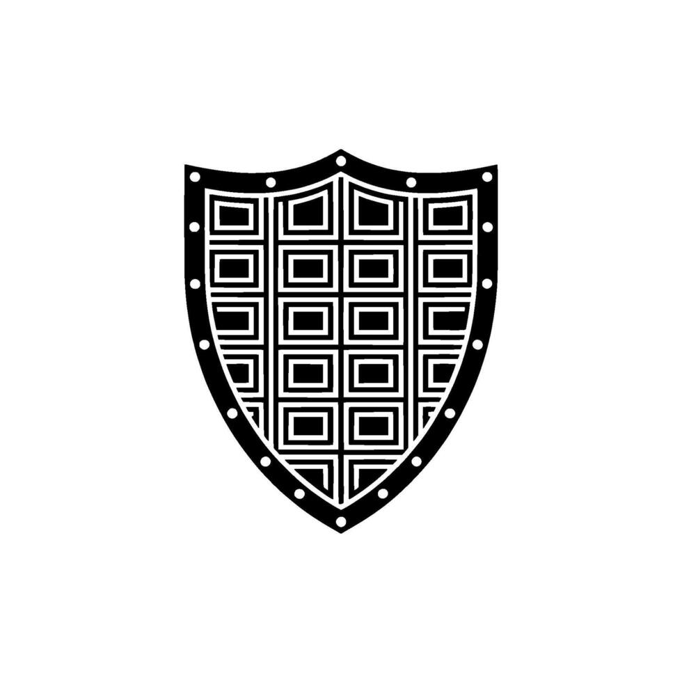 Geometric shield emblem with an intricate patterned fill and a decorative border of small circles isolated Pro Vector