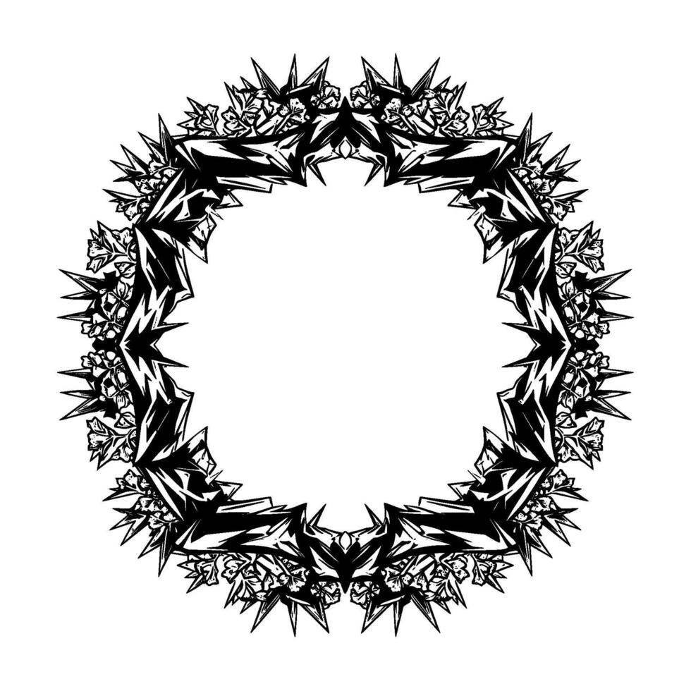 Intricate circular mandala frame featuring sharp angular tribal spikes and delicate floral clusters symbolizing contrast and duality Pro Vector