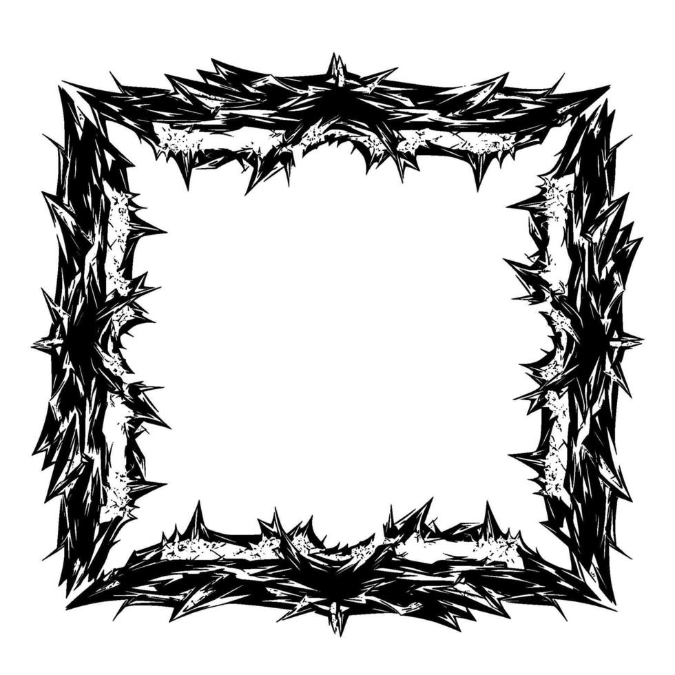Abstract sharp spiky geometric square frame border with distressed crackled texture and edgy pointed elements Pro Vector