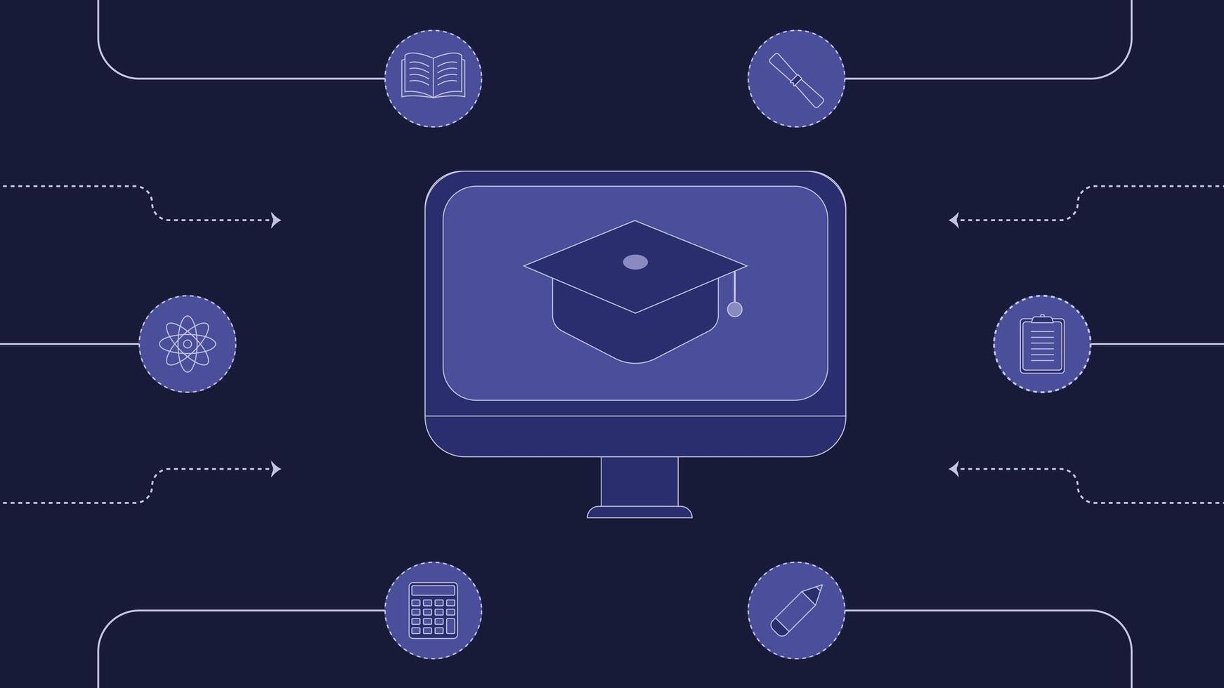 Clean modern online education background showing digital learning screen academic icons and technology flow ideal for elearning websites apps presentations and training content use Pro Vector
