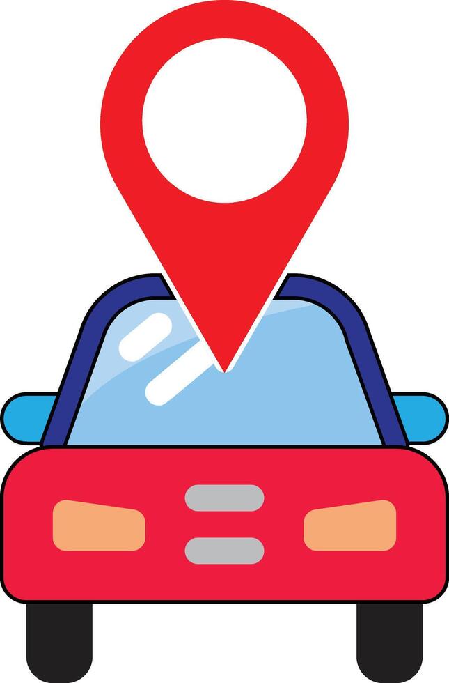 Red car with location pin icon on windshield navigation concept isolated on white background Pro Vector
