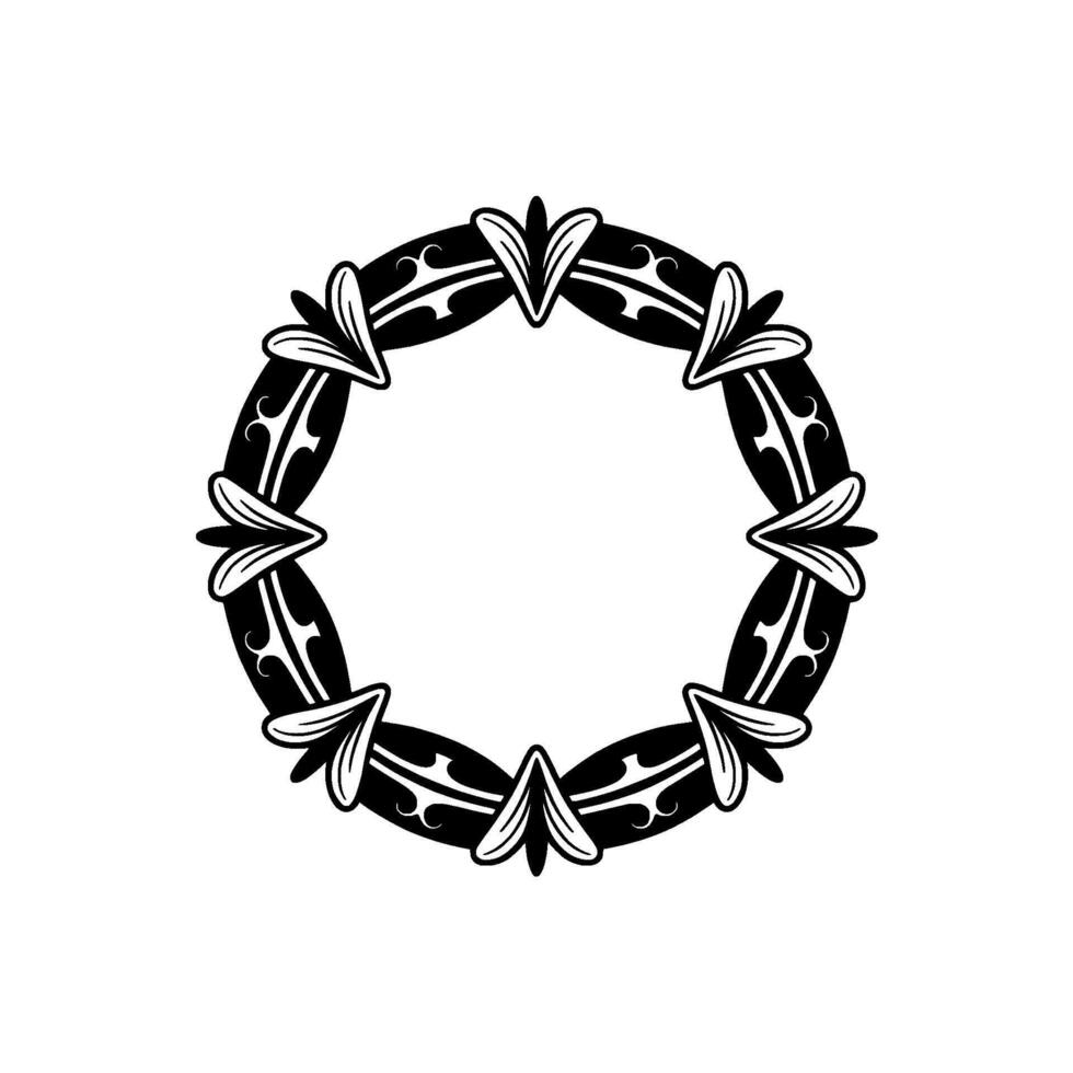 A detailed of an ornate circular frame or border composed of repeating stylized leaf and scroll motifs creating an elegant symmetrical Pro Vector