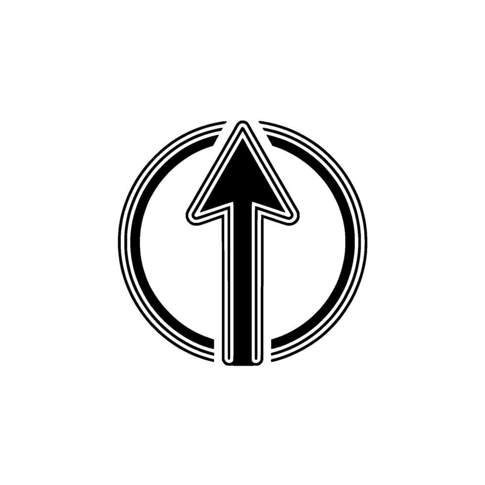 A bold symbol featuring an upward pointing arrow enclosed within two concentric circles Pro Vector