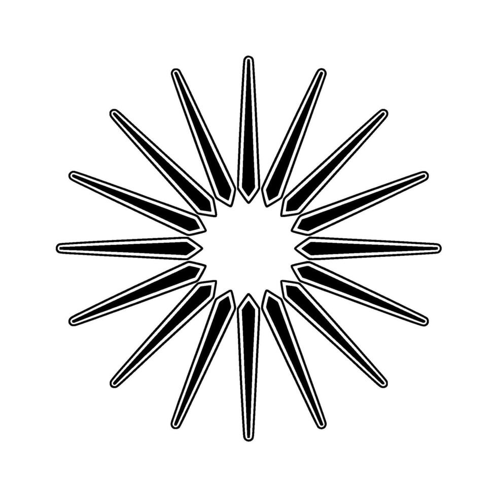 A geometric abstract radial starburst featuring sharp pointed shapes with outlines arranged in a circular pattern Pro Vector