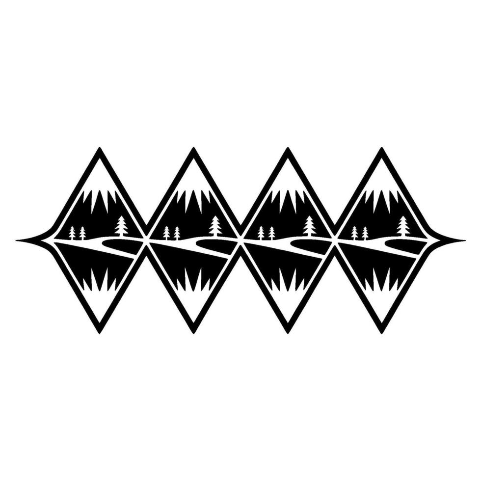 geometric pattern featuring a repeating landscape of snow capped mountains pine trees and a winding road within diamond shapes Pro Vector