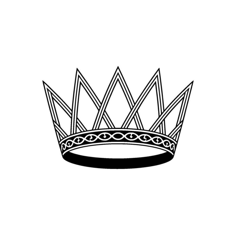 A stylized outline of a royal crown with sharp triangular points and intricate ornamental band presented Pro Vector