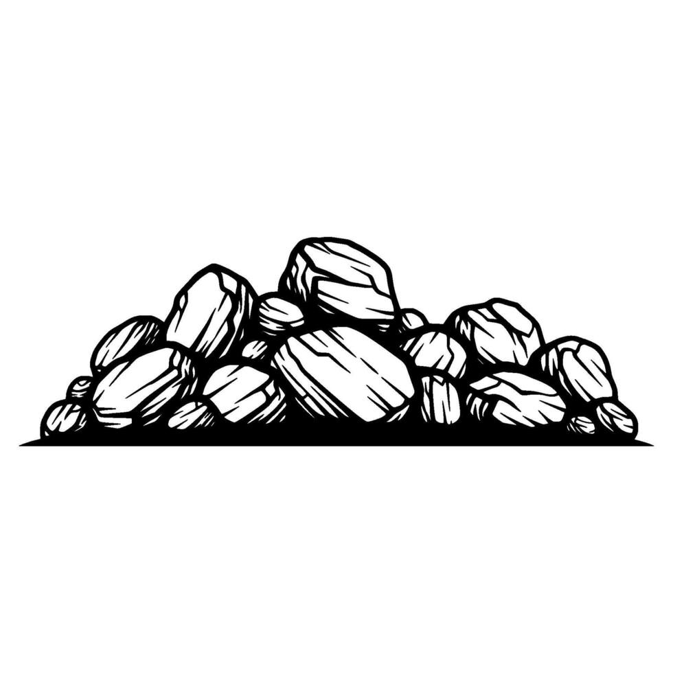 Stylized illustration of a pile of rough textured rocks with distinct outlines and hatching for shading isolated Pro Vector