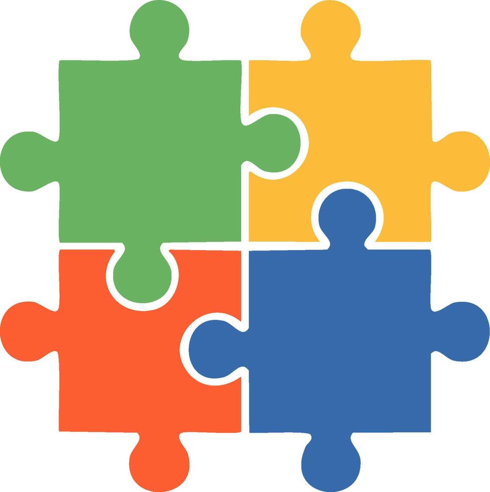 Connected puzzle pieces forming a square symbolizing unity, teamwork, and problem solving, representing strategy, intelligence and cooperation Pro Vector