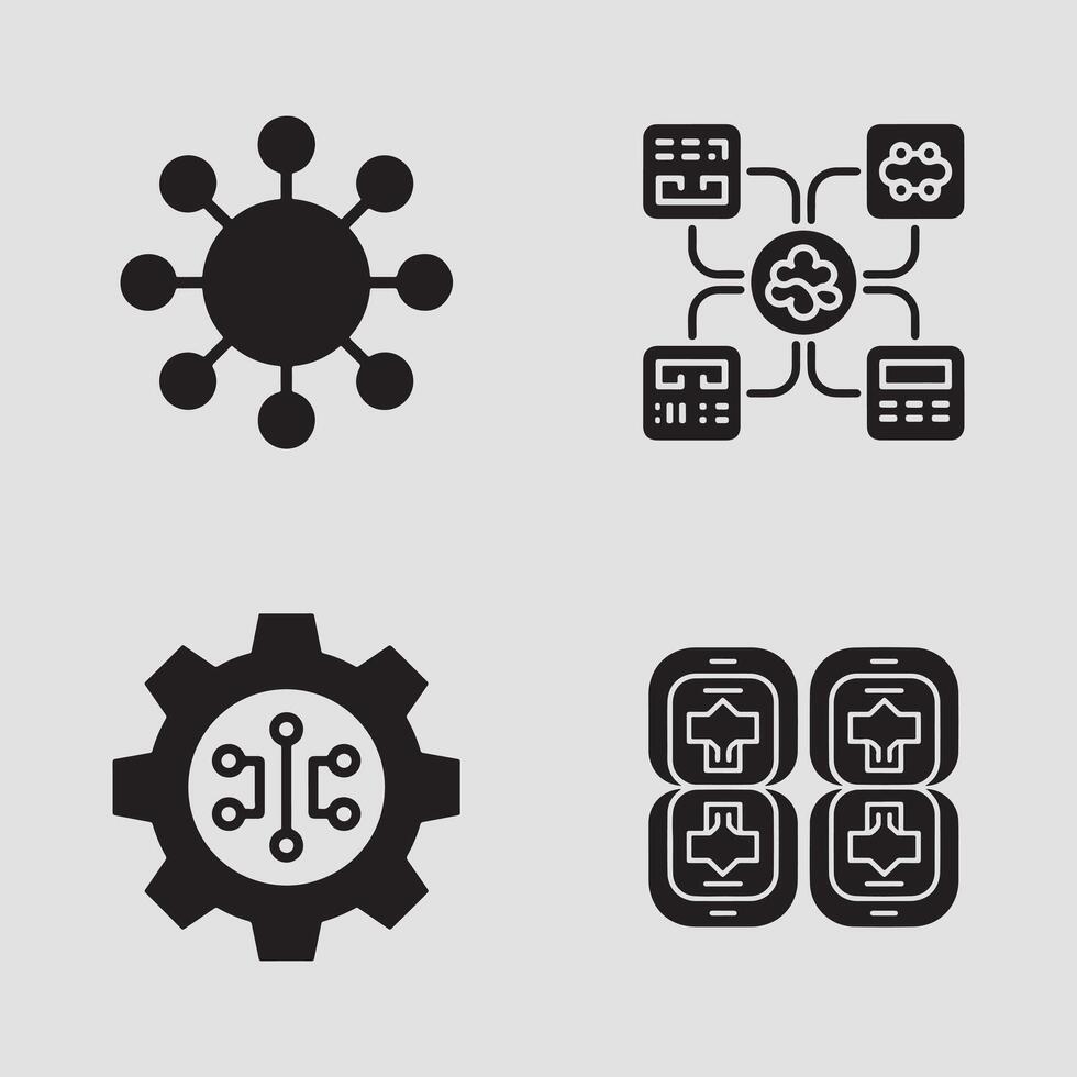 Diverse technology icons illustrating networking, artificial intelligence, engineering, and mobile solutions Pro Vector