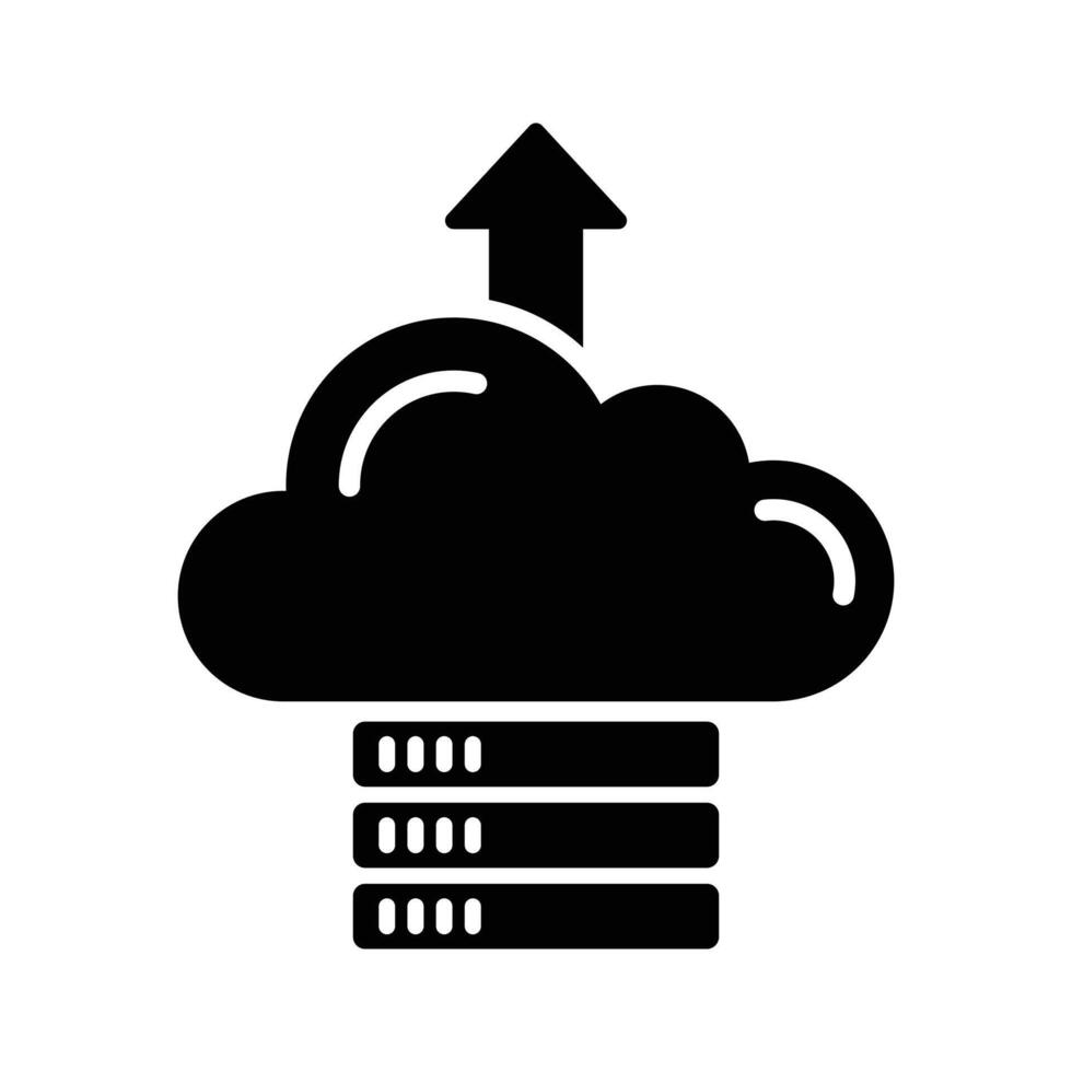 A black and white icon representing data migration from a server stack to the cloud Pro Vector