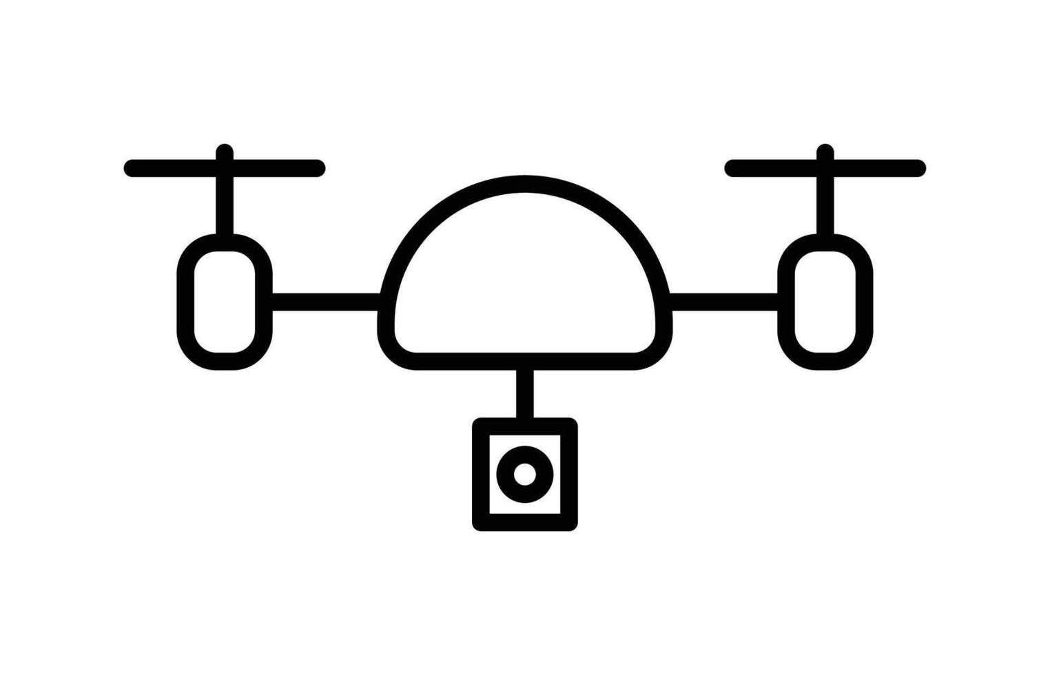 Minimalist Drone Icon with Camera in Simple Line Art Design Pro Vector