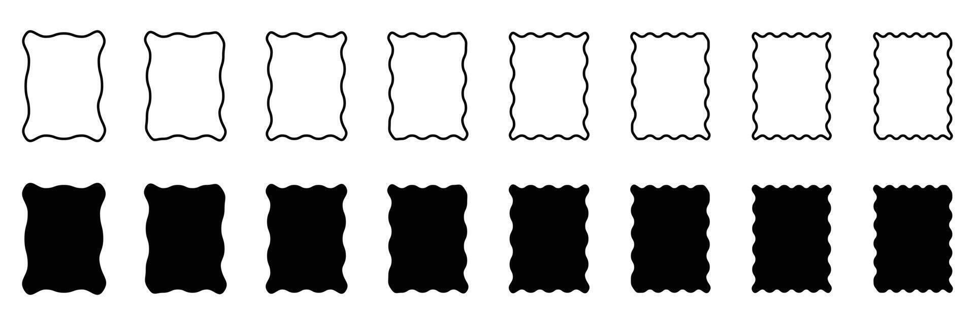 Wavy edge shapes frame box on black. Wavy edge rectangular frame box. Pro Vector