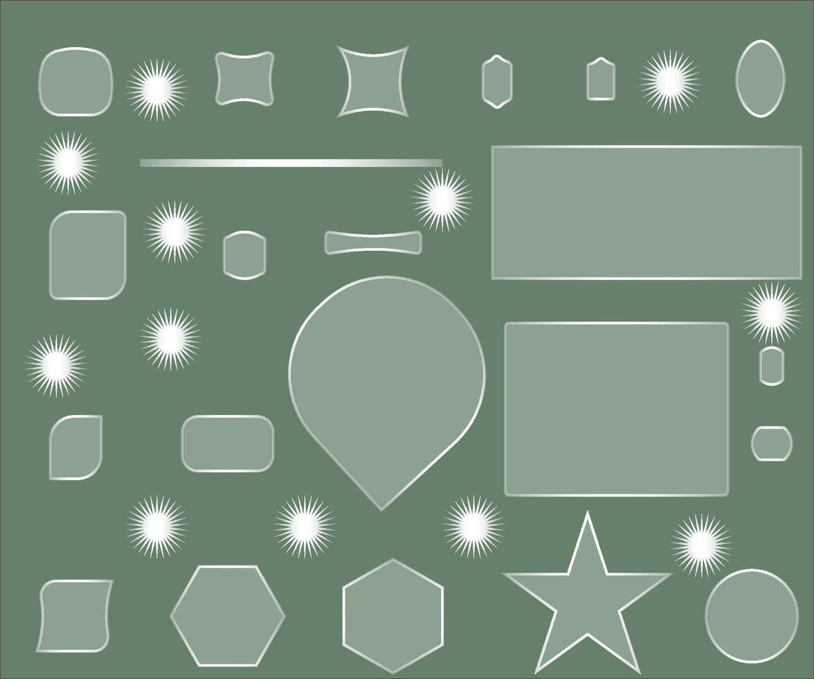 Light frame liquid glass Technology background. Set of glowing green glass rectangular, square and round frames on a dark background. vector