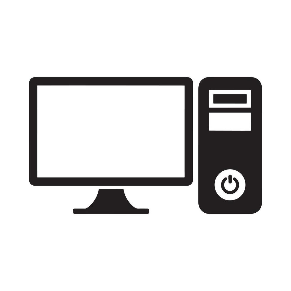 Simple desktop computer setup with monitor and tower black and white icon vector