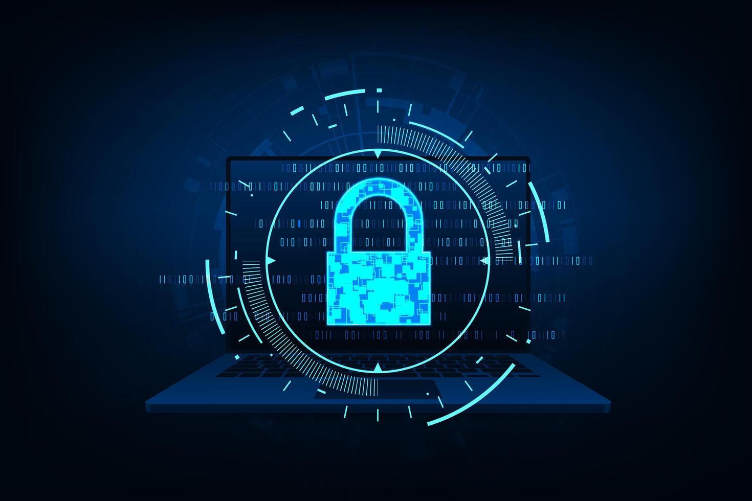 Technology security concept on a laptop monitor. Abstract digital technology innovation background. Pro Vector