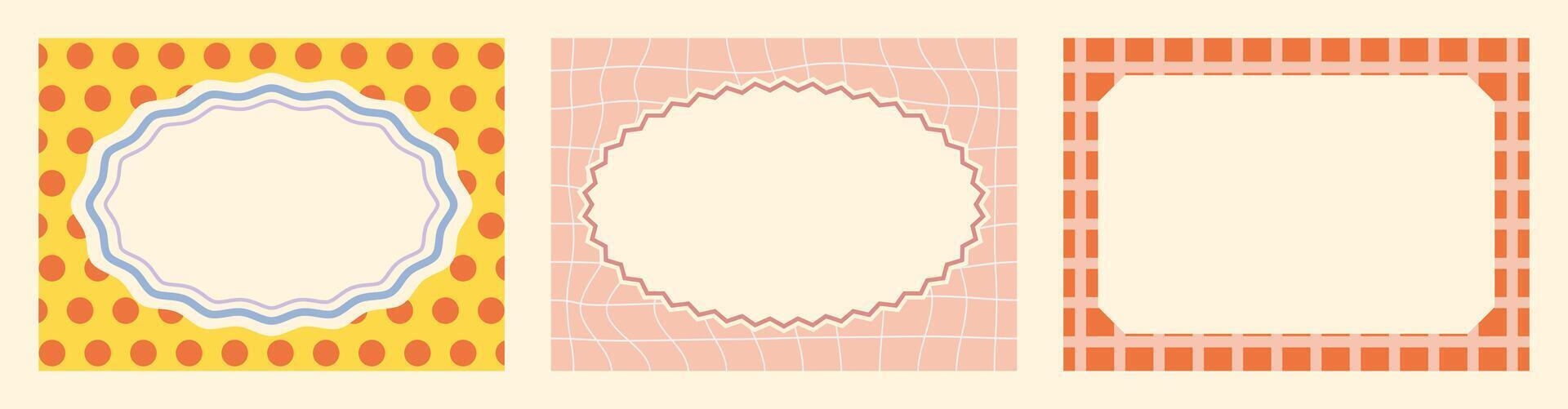 Collection of classic geometric border frames with checkerboard diamond and argyle patterns for aesthetic photo background Pro Vector