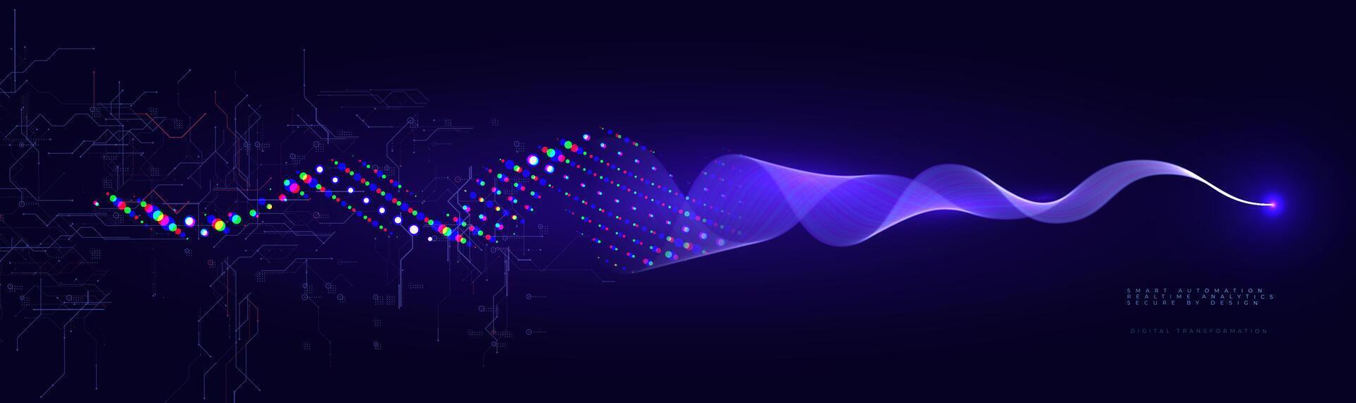 Digital Transformation Technology Halftone Wave Line Background, Data Science Ai Abstract Blue Flow Tech Pattern, Audio Sound Signal, Business Analytics Transform Process BG. Illustration Pro Vector