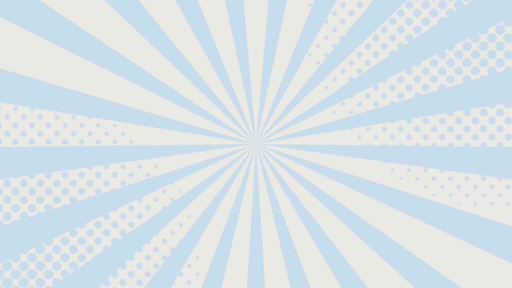 Soft pastel radial sunburst background with gentle blue and cream rays and halftone dots, minimal retro comic style abstract backdrop for banners posters web design presentations and creative layouts Pro Vector