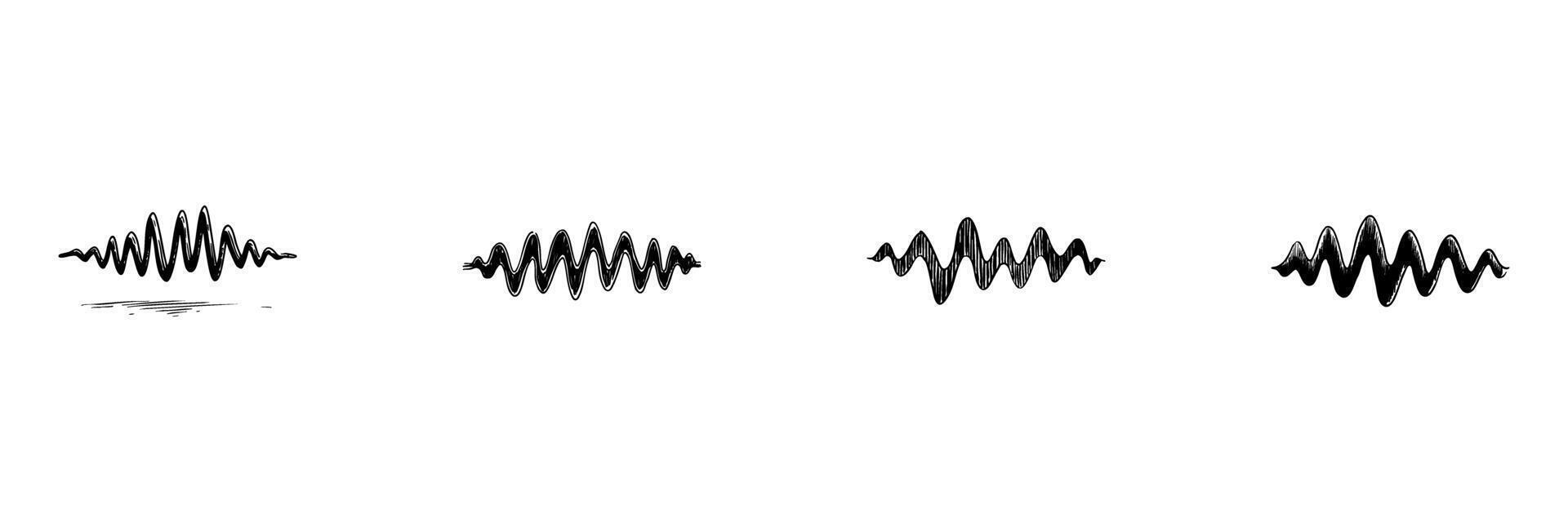 Sound Wave Doodle Sketch Set. Audio Frequency And Soundwave Patterns In Hand Drawn Style Collection. Acoustic Signal Representation. Isolated Illustration Pro Vector