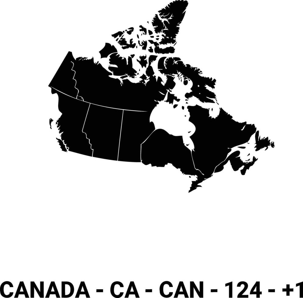 Canada map with country code and dialing code Pro Vector