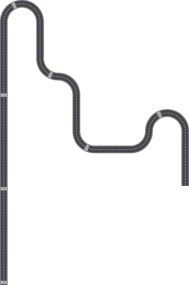 Top view highway path graphic showing a zigzag route with extended squared turns. Pro Vector