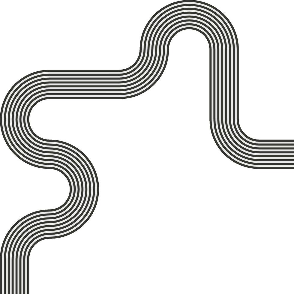Striped path following a single continuous route shaped by wave motion and curvature. Pro Vector