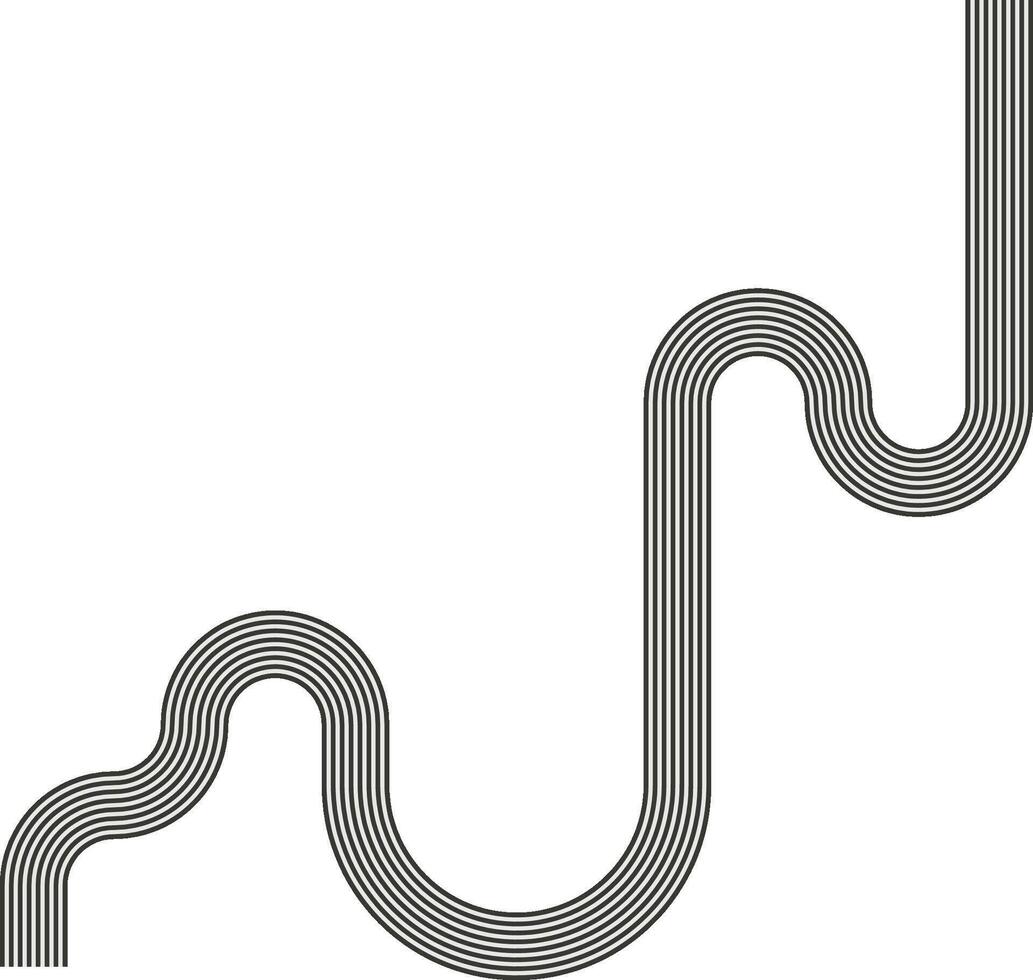 Striped path following a squared route with connected turns and linear movement. Pro Vector