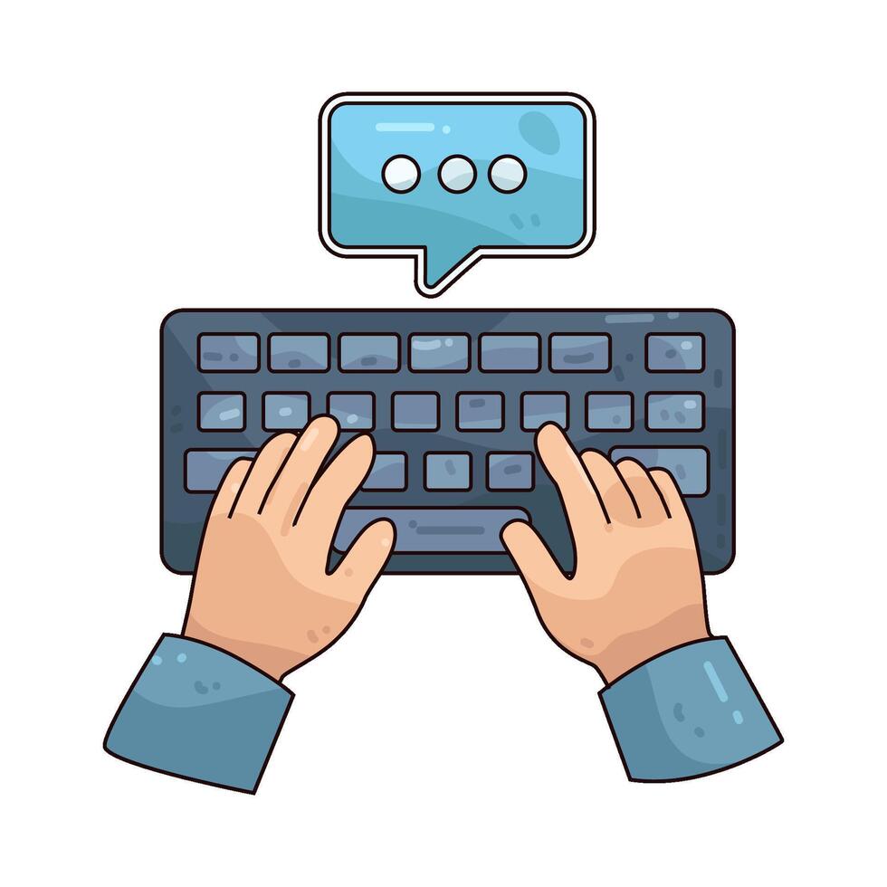 Hands Typing on Keyboard with Chat Bubble Pro Vector