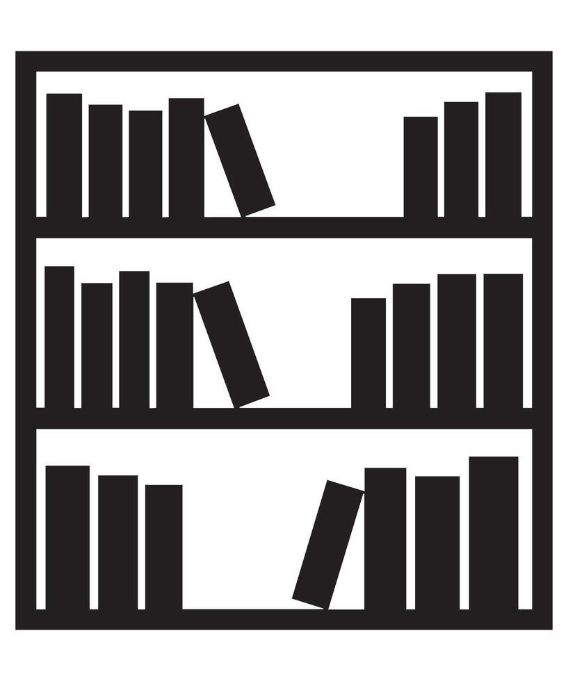 Black and white simple icon design featuring a bookshelf with multiple books on three shelves Free Vector