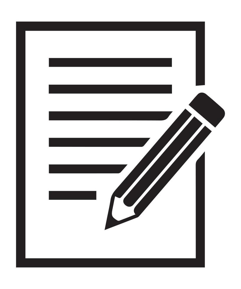 Icon illustration showing a document with lines and a pencil for note-taking or editing vector