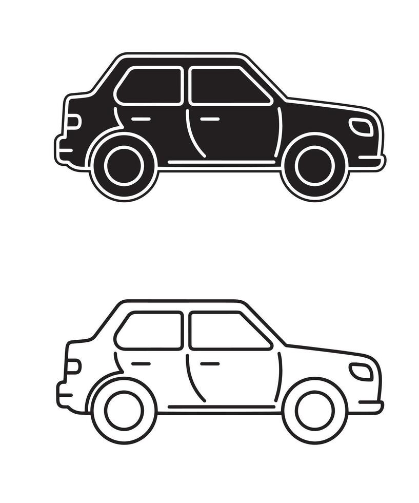 A set of two simple car icons, one filled and one outline, perfect for web and app design vector