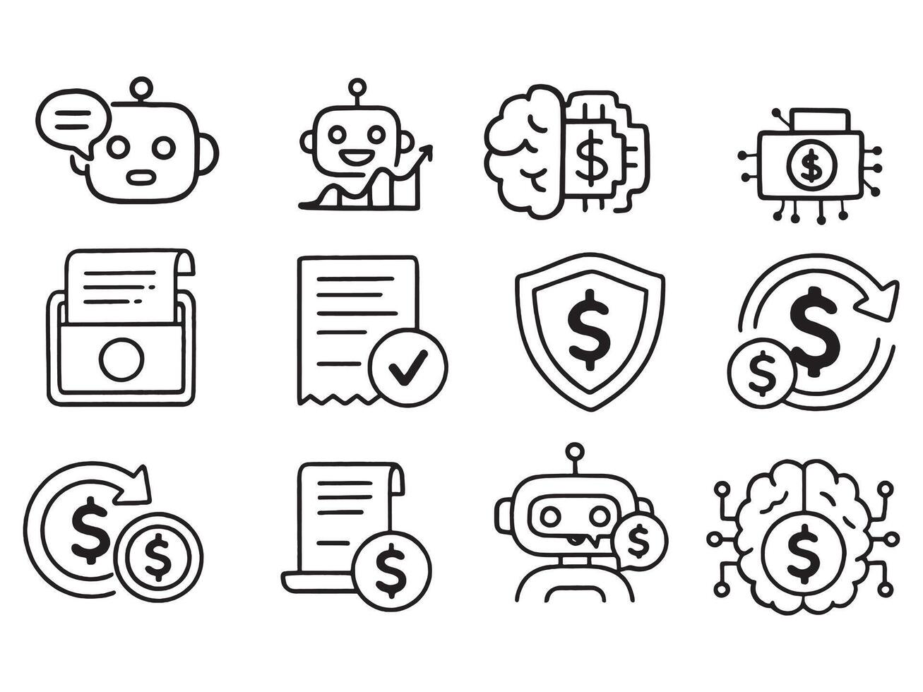 FinTech and Digital Finance Icons with AI, Automation, and Transactions Pro Vector