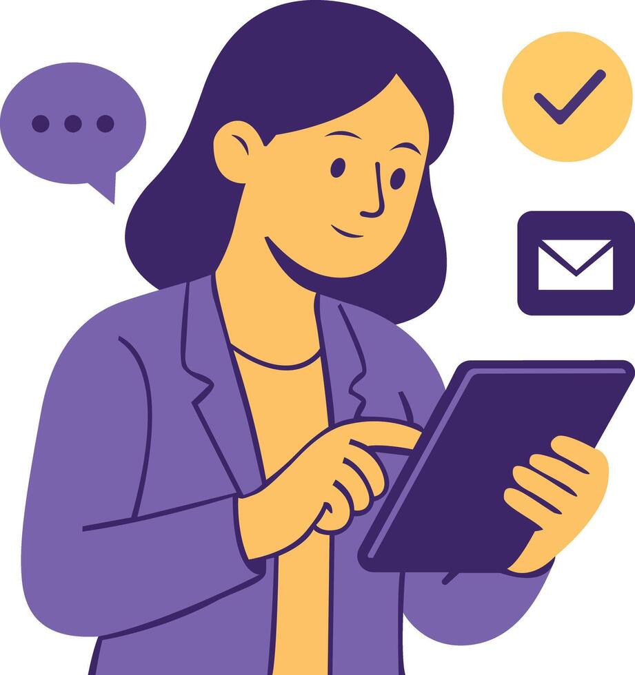 Modern flat illustration of a female professional using a tablet for online work Pro Vector