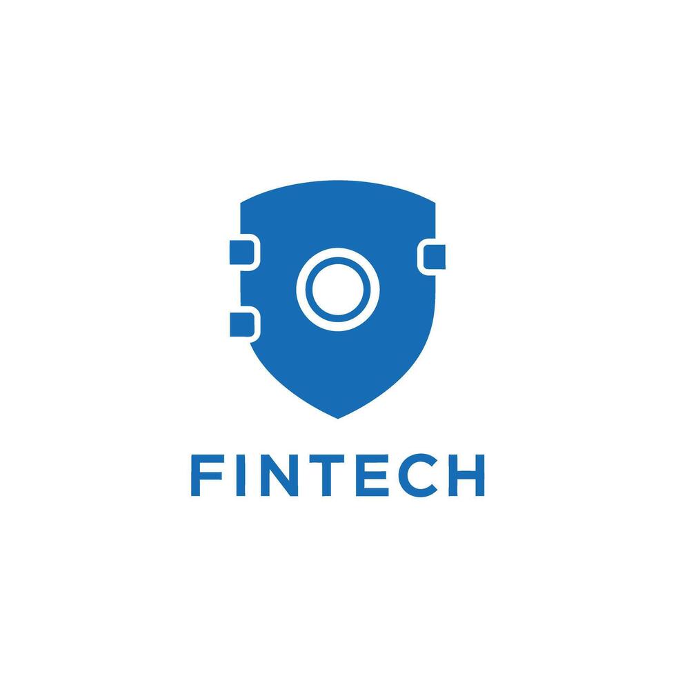 Fintech security shield with circular element and circuit board pattern Free Vector
