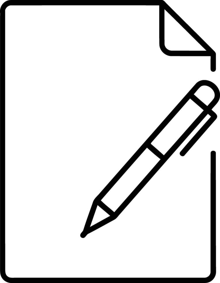 Simple black and white illustration of a piece of paper with a pen on it, representing writing and documentation Pro Vector
