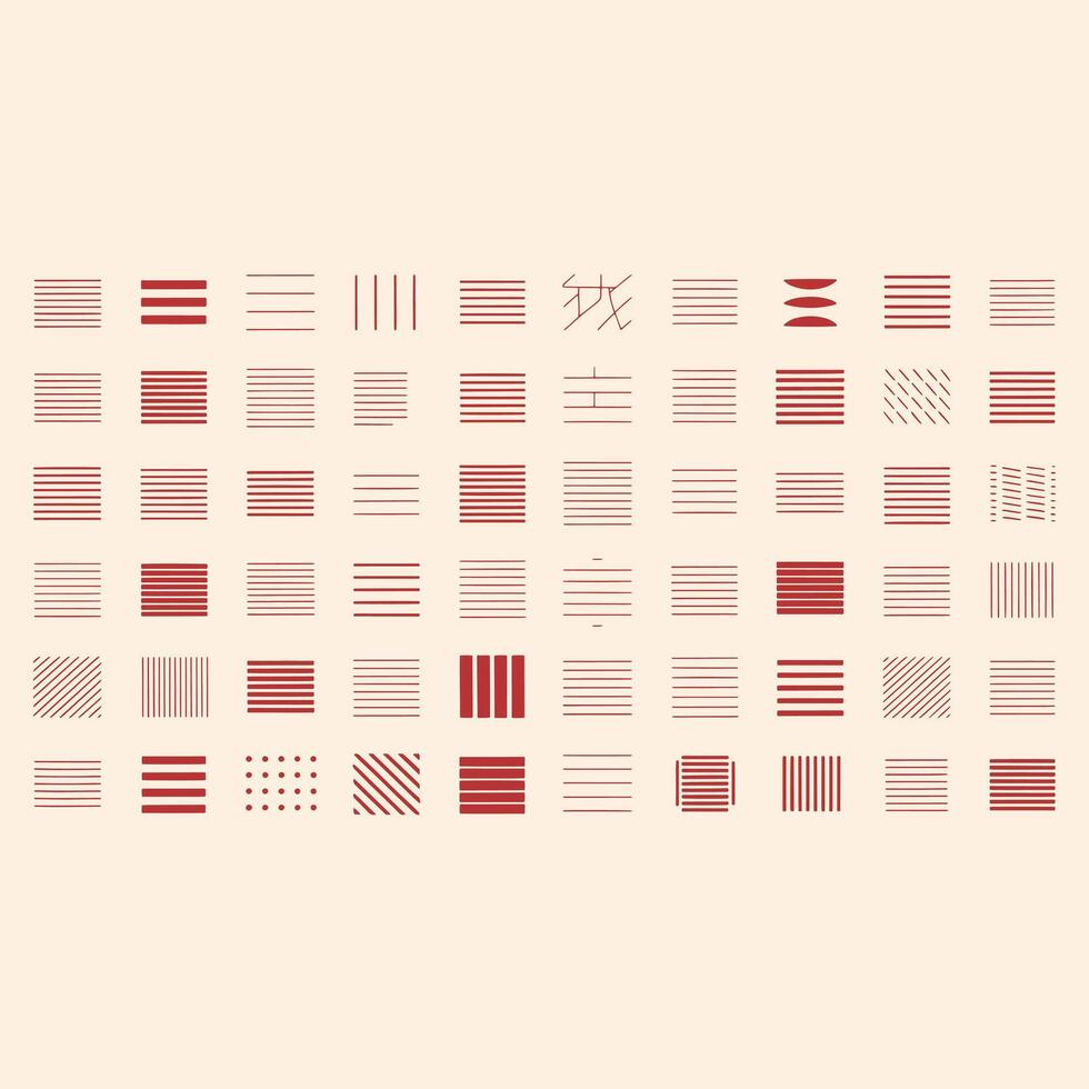 Collection of various red and brown line and dot patterns arranged in a grid line patterns Pro Vector