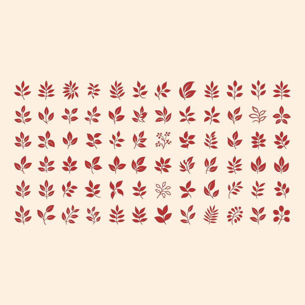 Collection of various red leaf arranged in a grid pattern on a light background leaves botanical Pro Vector